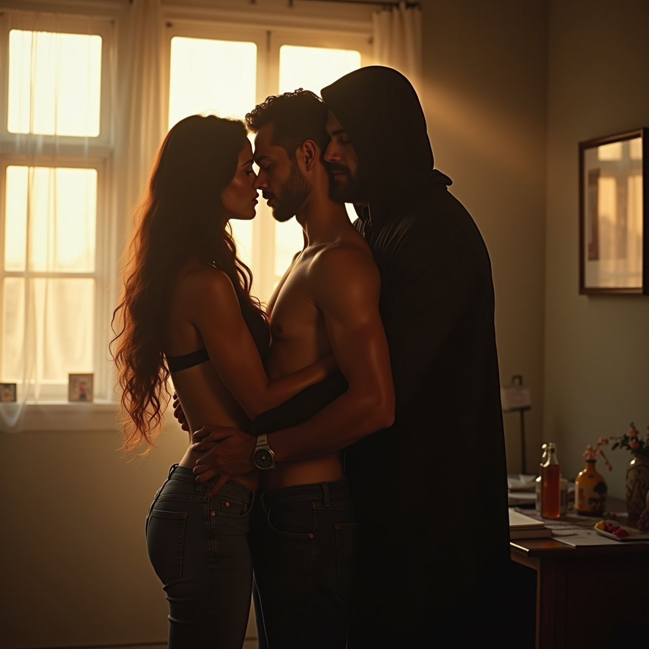 Across the opulent ballroom of a crumbling Gothic mansion, you lock eyes with the masked stranger, their piercing stare cutting through the crowd's haze of perfume and candle wax, igniting a slow pull that has your pulse thickening under silk. Drawn into shadowed alcoves, their fingers graze your wrist, unearthing tremors of inexperience against their assured caress, confessions whispered about lives half-lived spilling amid rising musk of arousal, until lips crash in a denied kiss that leaves y